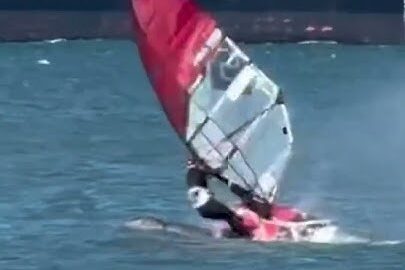Footage shows a man windsurfing being forcefully thrown from his board as a whale breaches off the California coast An unsuspecting windsurfer...