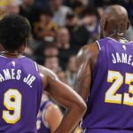 The father-son duo etched their names in the history books after the elder James found his son for a 3-pointer.