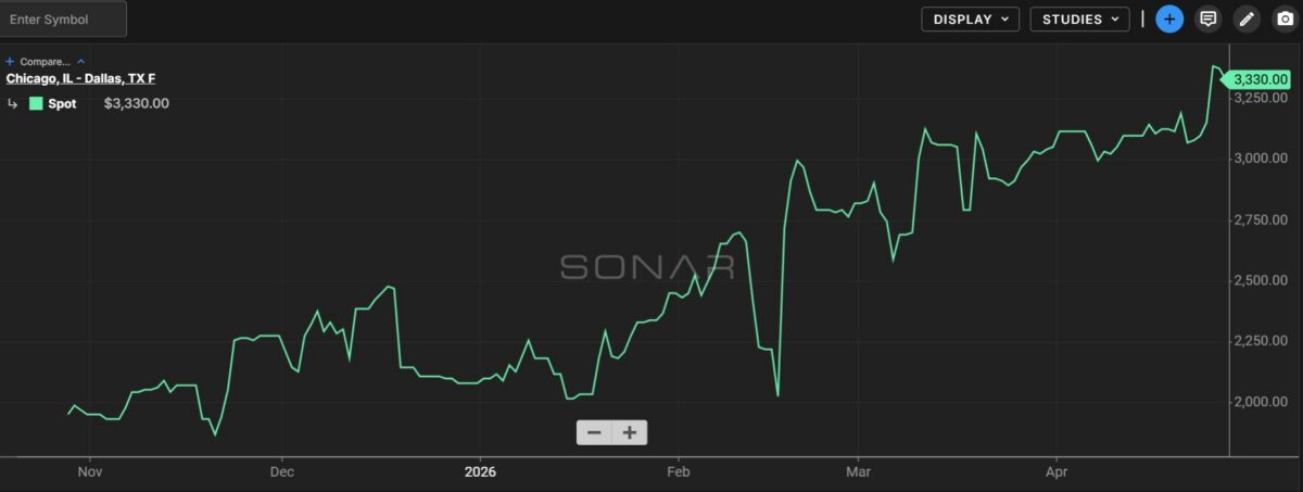 Spot Chicago to Dallas flatbed rates, per SONAR